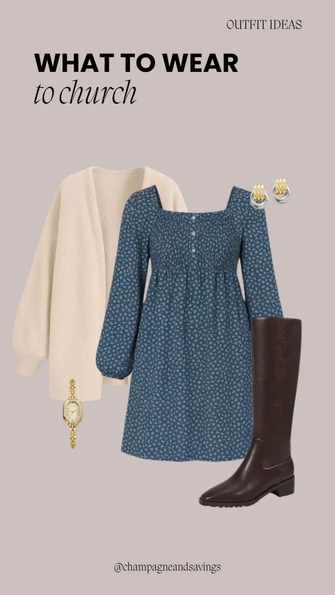 Such a great outfit idea that looks cute and is also super comfortable. Pair it with taller boots so you arenβt showing too much skin and it definitely can work for church.