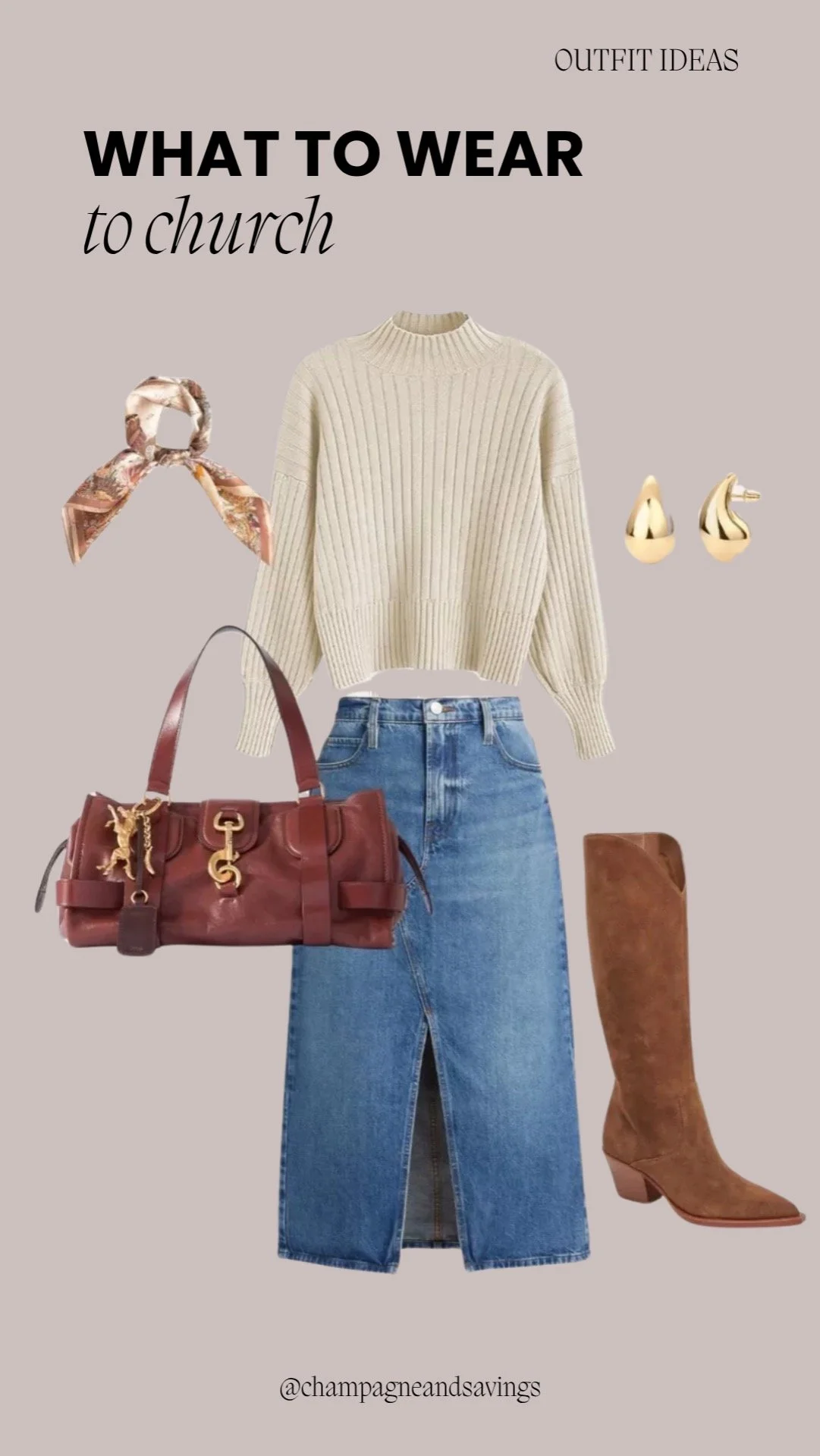 Who says church outfits canβt be trendy? Iβve been loving the long denim skirt looks, and this one is great for a modest take you can totally rock at Sunday service.