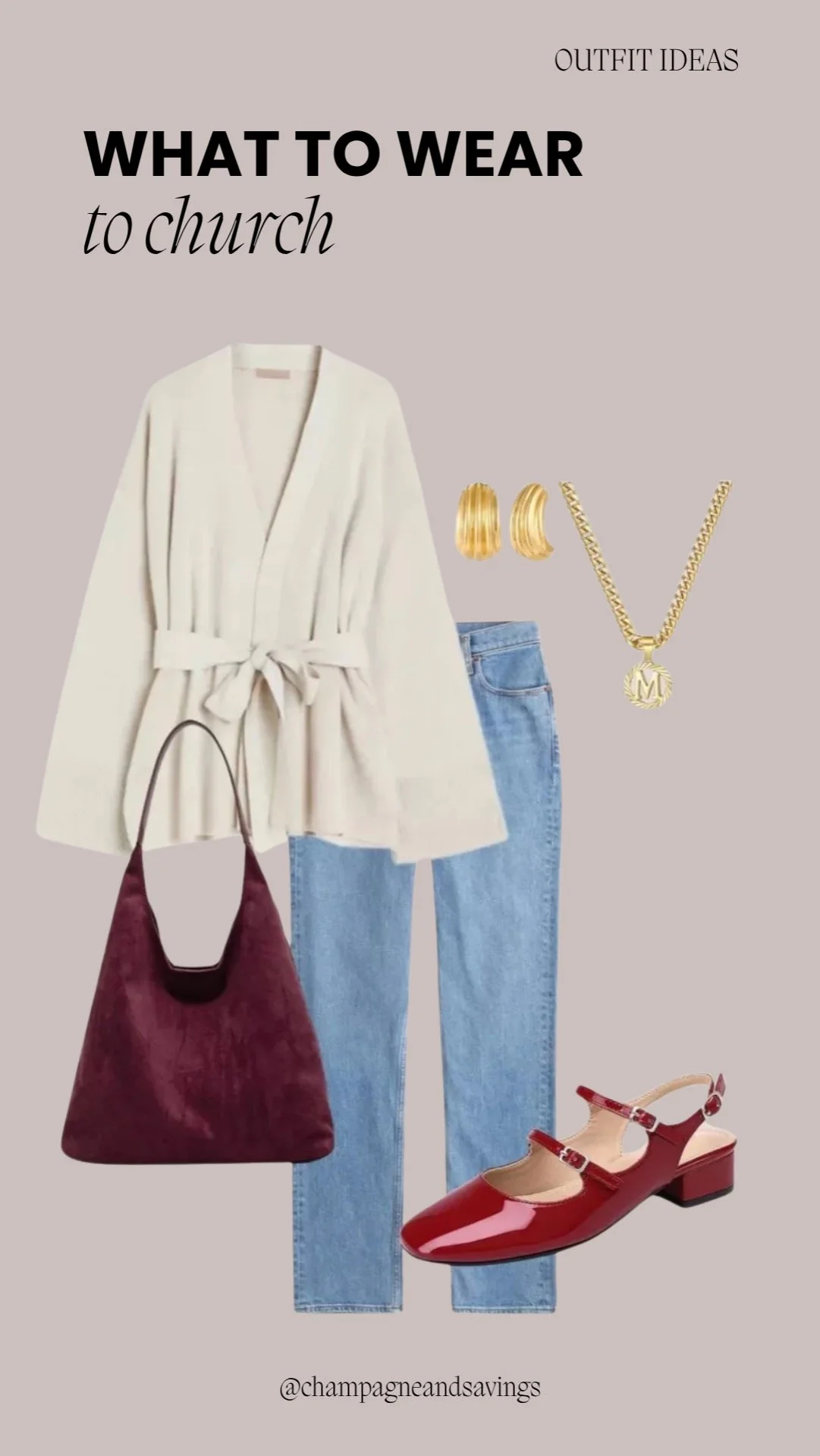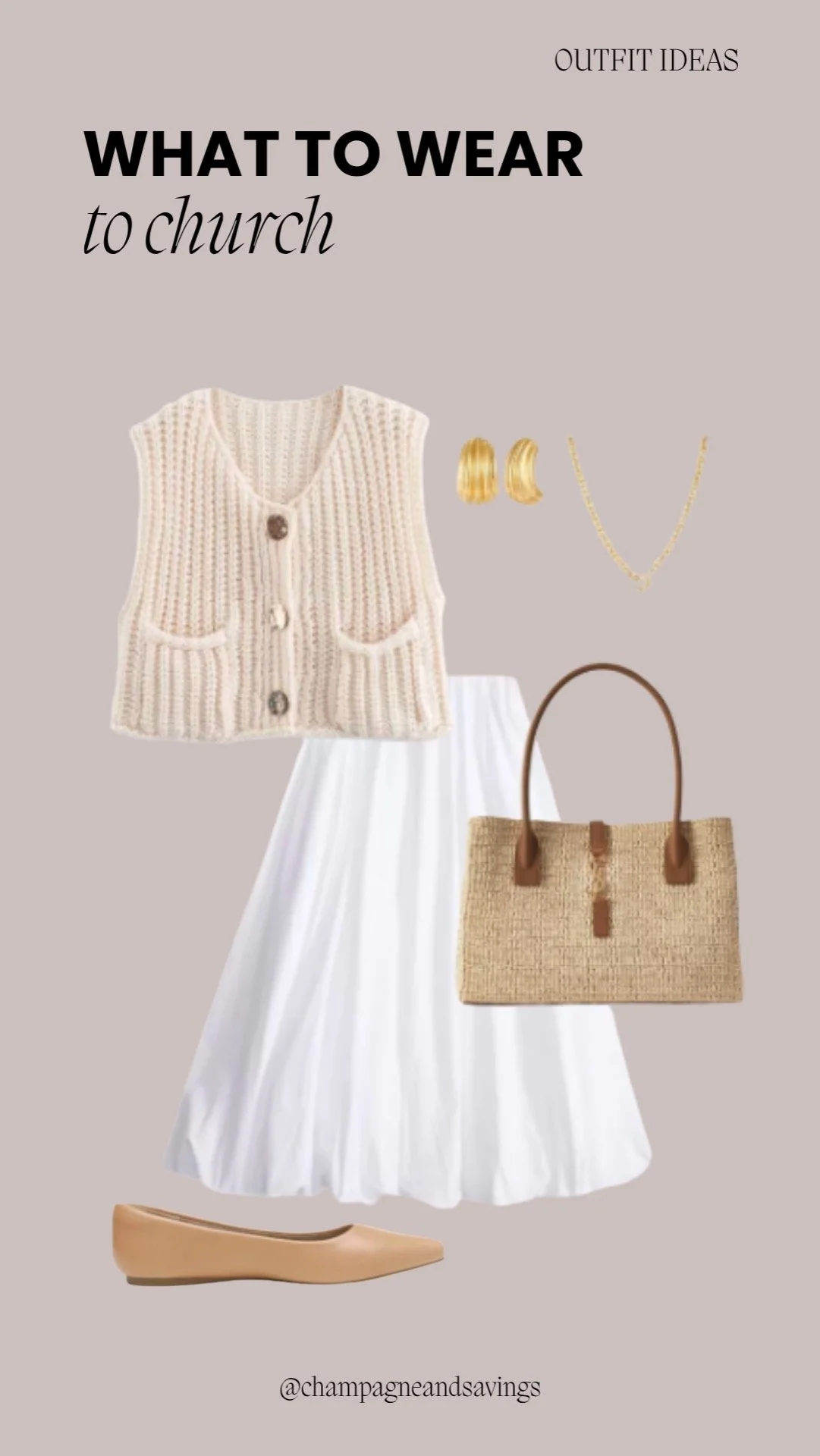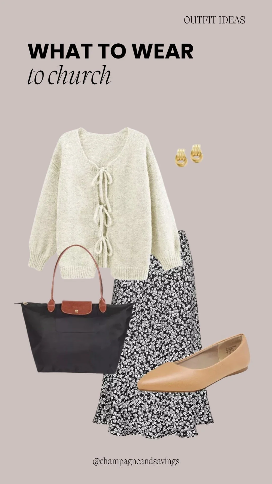 A chic little midi dress with a bubble hem and a sweater thrown over your shoulder is a total vibe. This elegant yet approachable look is anything but basic, but perfectly appropriate for a church setting.