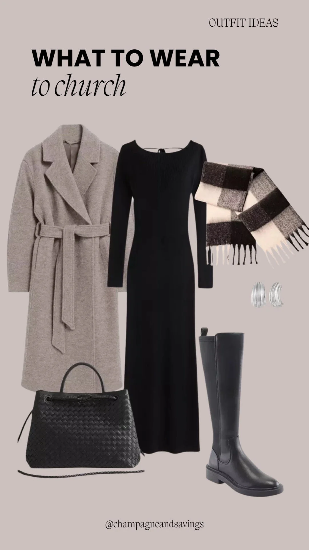 A simple black sweater dress is a great closet staple for the winter. And definitely something that can be worn to church. Easy and stylish.