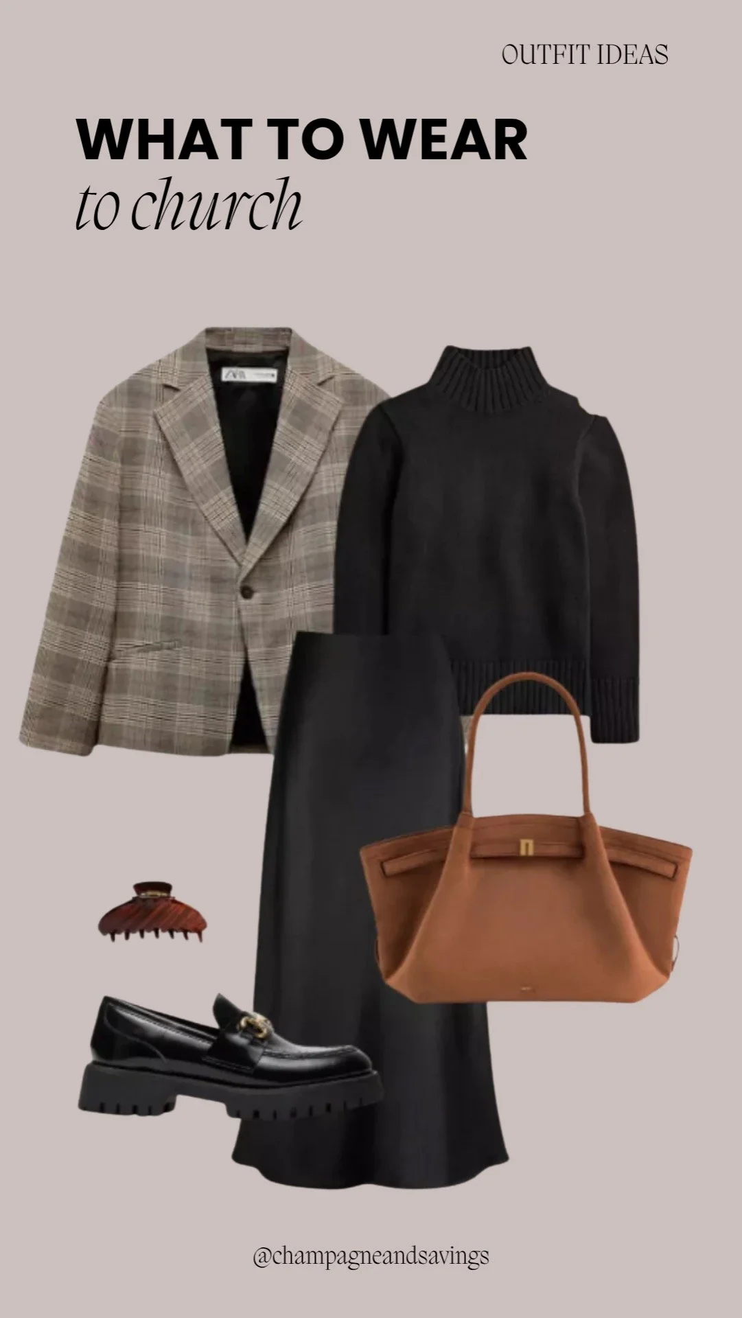 Love this plaid blazer layered over a turtleneck and long satin skirt. Itβs great if youβre headed to church in the winter and still want to feel dressed up.