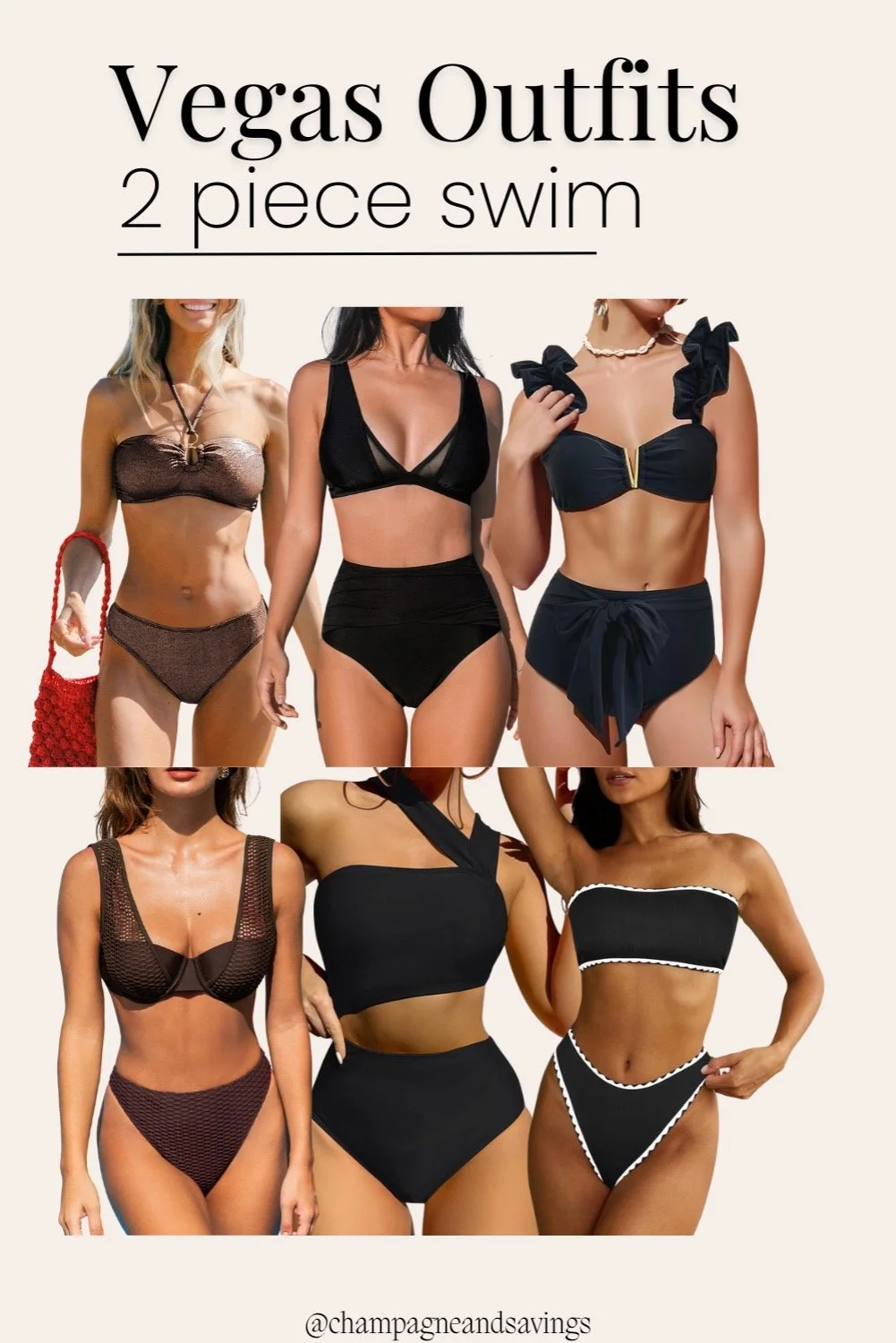 3- Two piece swimsuits are always a great option too. These have all have some fun elements that make them feel perfectly extra for a Vegas poolside scene.