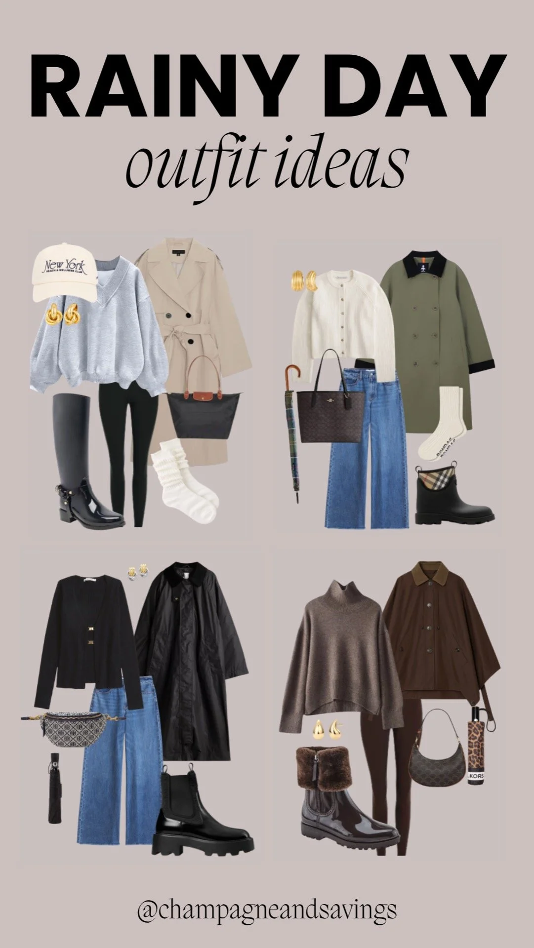 Rainy days don’t have to ruin your outfit. With the right layers and cute rain boots, you can totally look put together without getting totally soaked. These looks are so cute, you might even pray for rain!