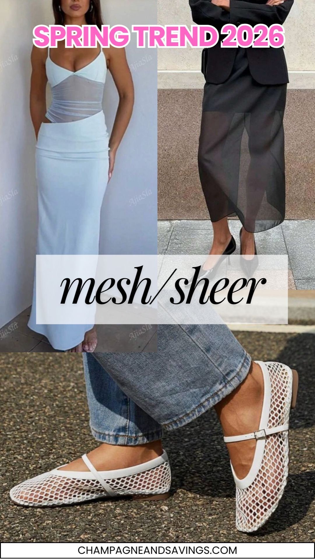 Sheer and see-through skirts, mesh flats, and peekaboo panels. You can go bold or keep it chill with sheer layers over basics. I love this for ballet flats and maxi skirts especially!