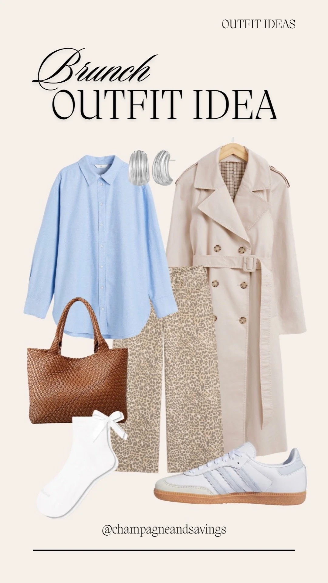 Early Spring can mean the weather is a bit cooler, so this outfit is perfect for that kind of weather. Leopard pants are my current hyperfixation, and they look so chic with a button down and trench coat.