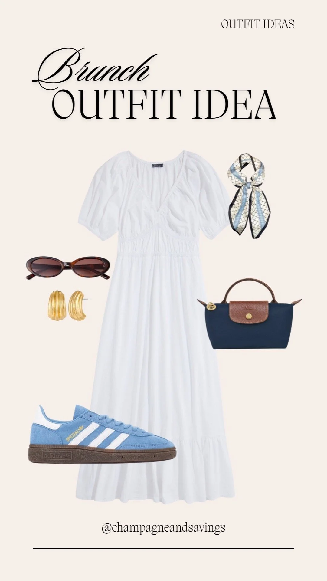 I love a good dress and sneakers combo for brunch! This dress is so chic and dreamy, and it works perfectly with a simple pair of white sneakers.