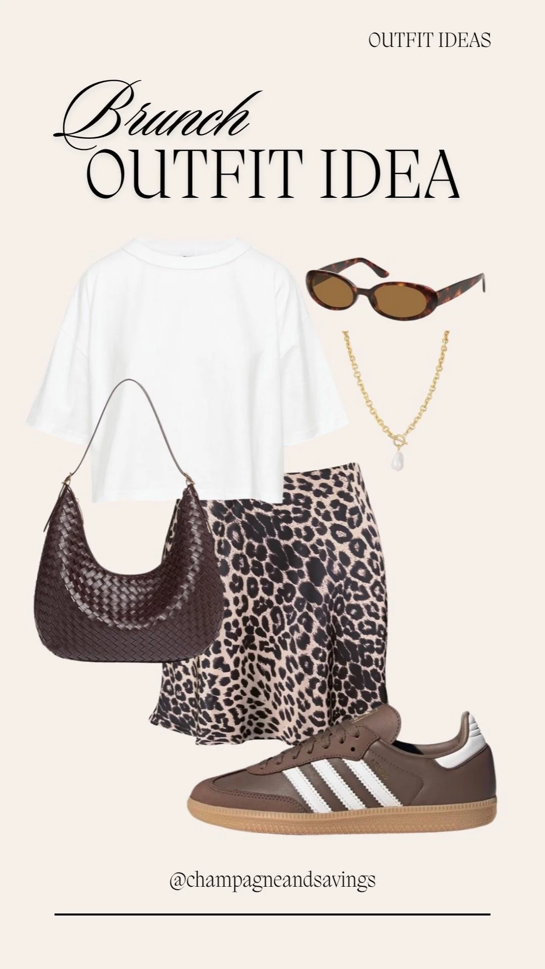 When it’s hot out, this is the perfect cool girl look for afternoon brunch. It’s easy to put together, with a pop of style with the leopard mini satin skirt.