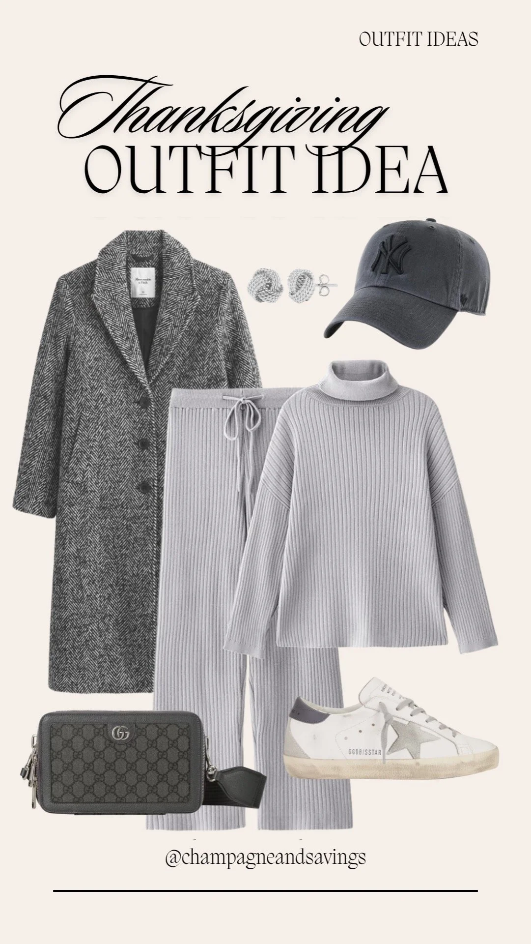 This is the “I’m not trying but I still look cute” vibe. A matching knit set is basically pajamas in disguise. Throw on a coat, cute sneakers, and a cap to look like you planned it.