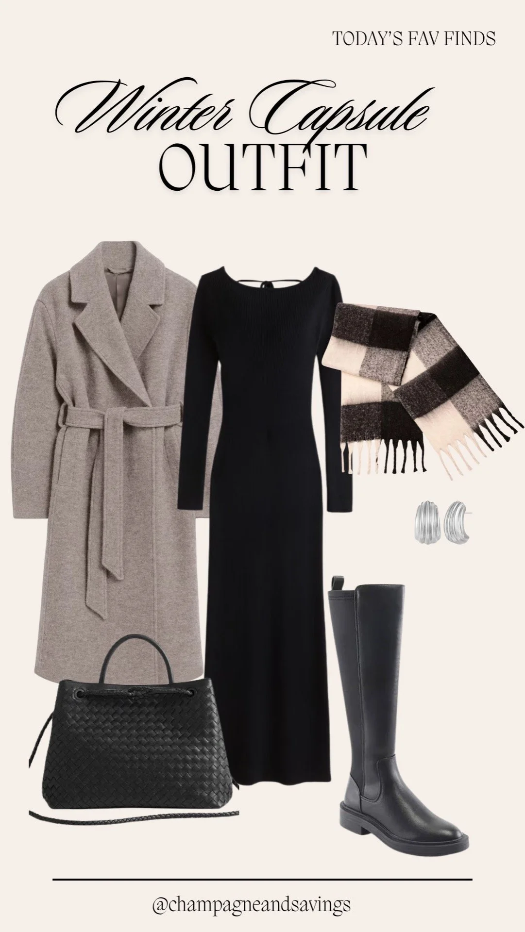 Scarf Coat- The scarf coat is a vibe this winter and it makes your outfit instantly trendy! Picking a nice neutral color means it will go with most other items in your capsule.