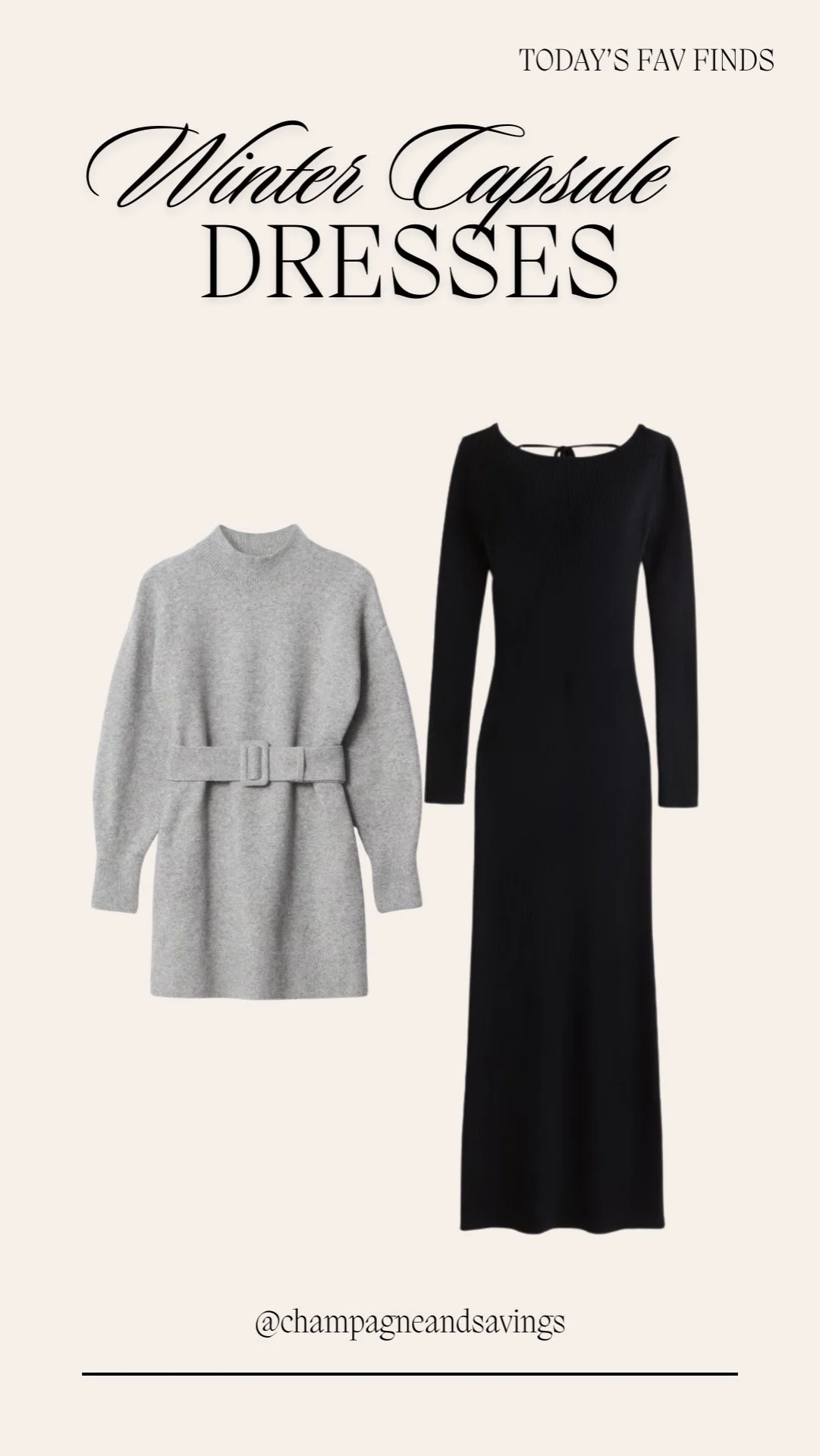 Mini Sweater Dress- You donβt need much in the way of dresses for winter because, well, itβs freezing! But a nice cozy mini sweater dress in a neutral color is something you can easily throw on that is comfy, cozy and perfect for winter weather. Pair with tights or boots and youβre set! (If you need ideas, check out my post on how to style sweater dresses)
