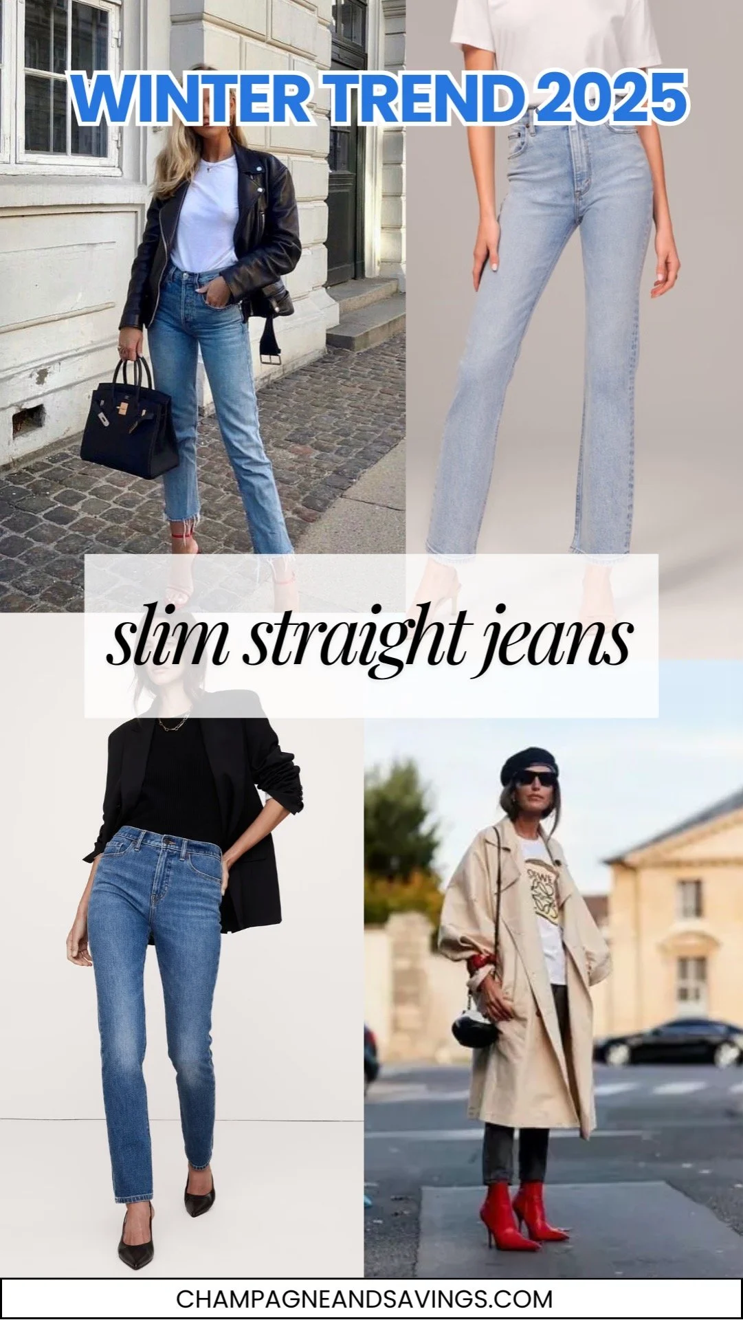 Skinny jeans aren’t fully back, but straight-leg and slim fits are the go-to now when you need a slimmer silhouette. They’re easy to style with everything from boots to flats.
