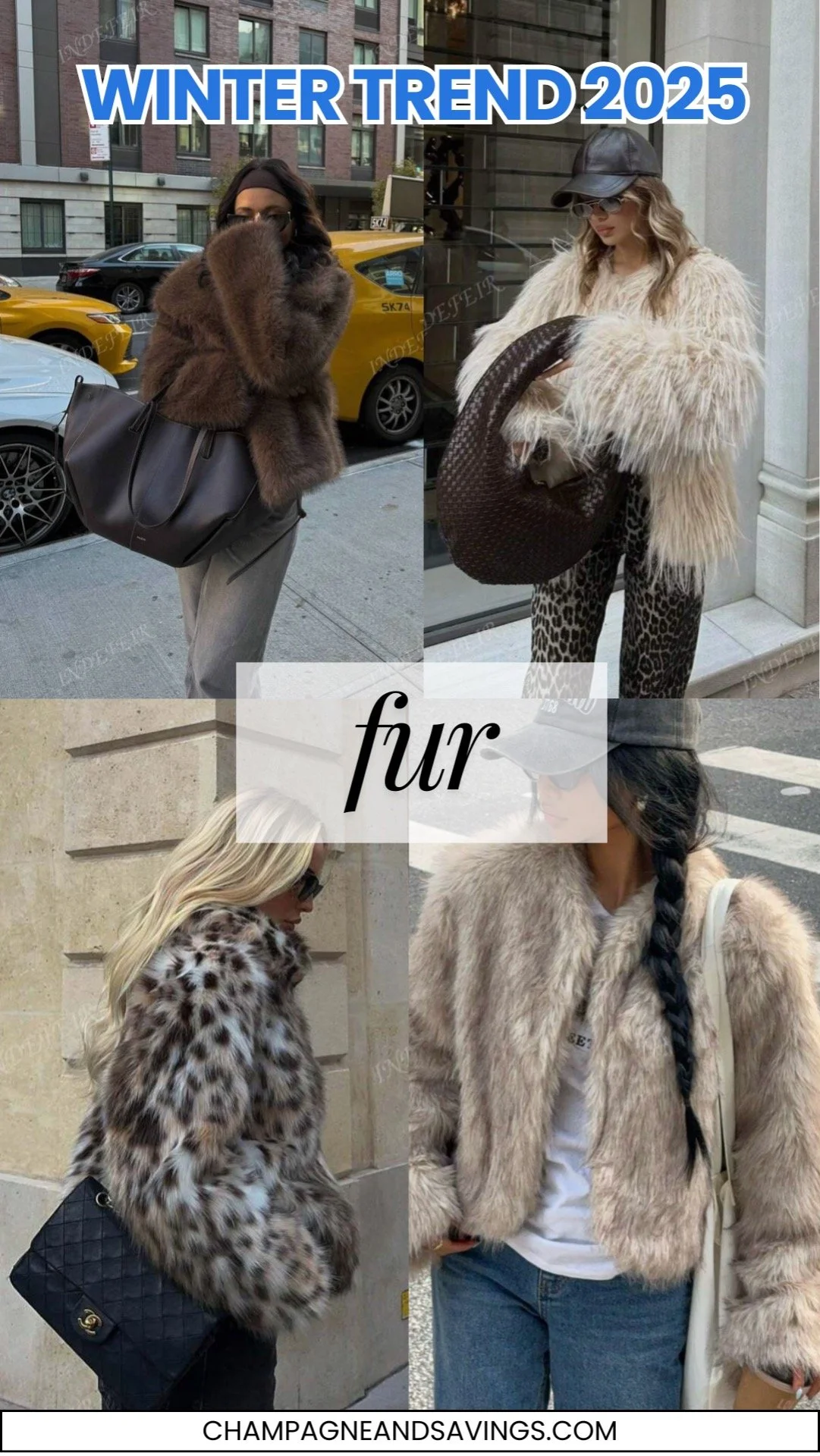 Faux fur is big this year. Mostly coats, but bags and even fuzzy-trimmed boots are not off limits. It instantly makes any outfit feel luxe.