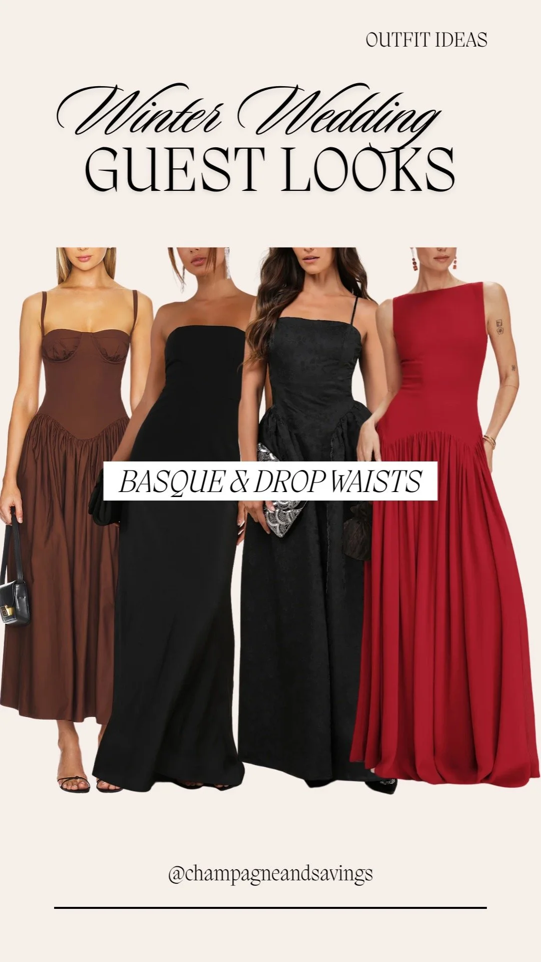 This vintage-inspired trend is making a strong comeback in both bridal and wedding guest fashion. A basque waist dips into a subtle V-shape, while a drop waist sits lower on the hips to create a long, elegant silhouette.